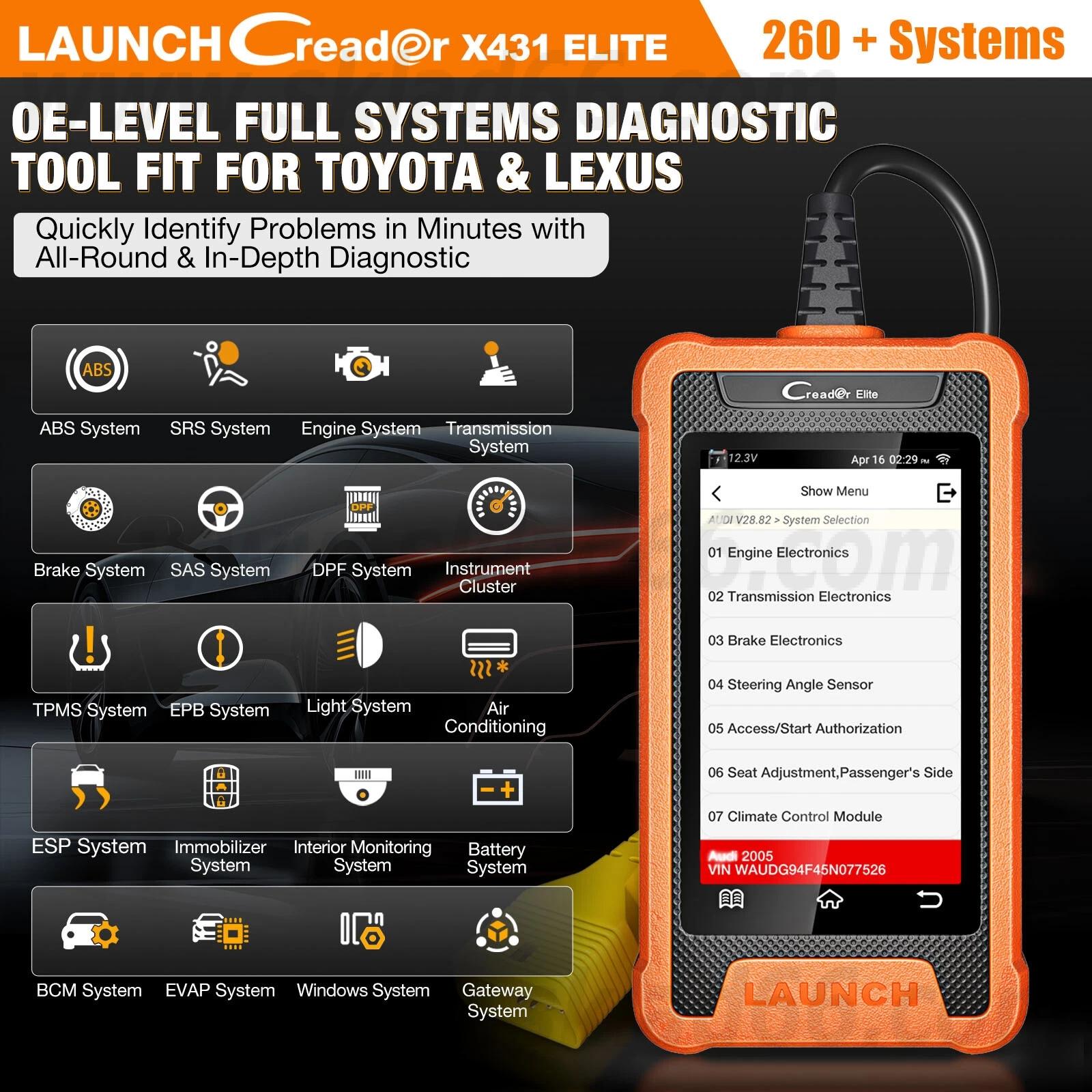 Позволява работа на професионално (дилърско) ниво с всички контролери: управление на двигател, автоматична скоростна кутия, ABS, airbag, табло, климатизация, окачване, фарове и много други.